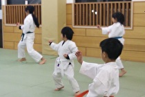 道場に慣れてきましたら、空手の身体の動かし方を基本を通じて習得していきます。その頃には先輩道場生の真似をしながら段々と同じ動きができるようになります。